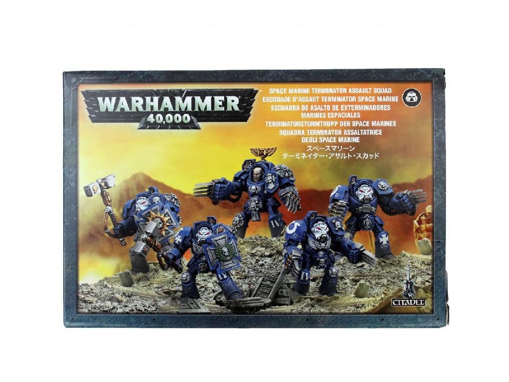 This box set contains five multi-part plastic Terminators, and includes options for a Sergeant and the choice of either a pair of lightning claws or thunder hammer and storm shield for each Terminator. Models supplied with Citadel 40mm Round bases.