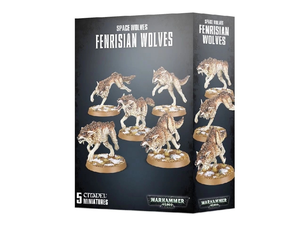 The set includes 5 multipart plastic Fenrisian Wolves, with interchangeable heads for added variety. Each model is supplied with a Citadel 40mm Round Base.