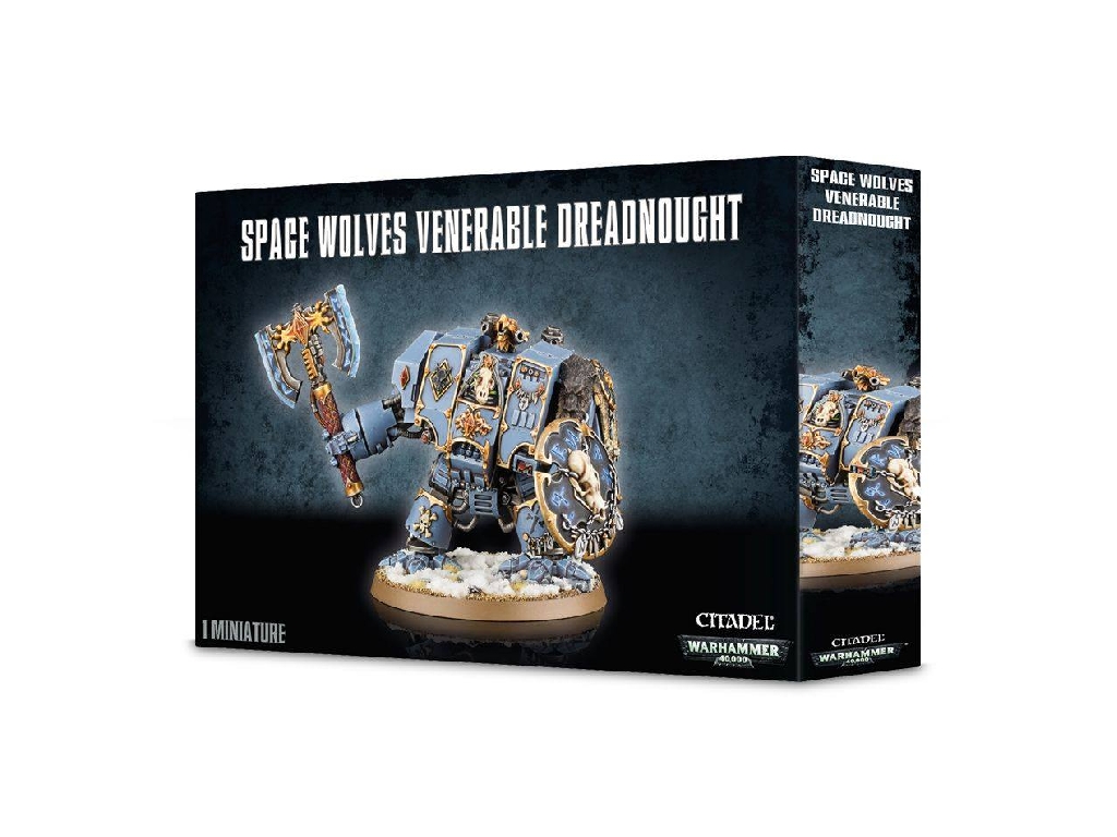 This multi-part plastic kit makes one Space Wolves Venerable Dreadnought armed with a Fenrisian great axe and blizzard shield. It comes with a selection of additional weaponry, including a helfrost cannon and a multi-melta.