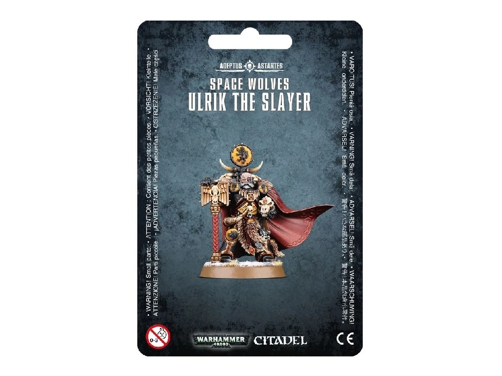 This multi-part plastic kit contains all the components necessary to build Ulrik the Slayer, a single-pose Space Wolves miniature! Wielding his massive crozius arcanum and clutching the Wolf Helm of Russ, he cuts an impressive figure indeed, inspiring the Spaces Wolves around him to ever-greater deeds. His backpack features wolf skull vents and his windswept cloak is covered in engraved designs. Eight components in total, includes a Citadel 32mm Round base.