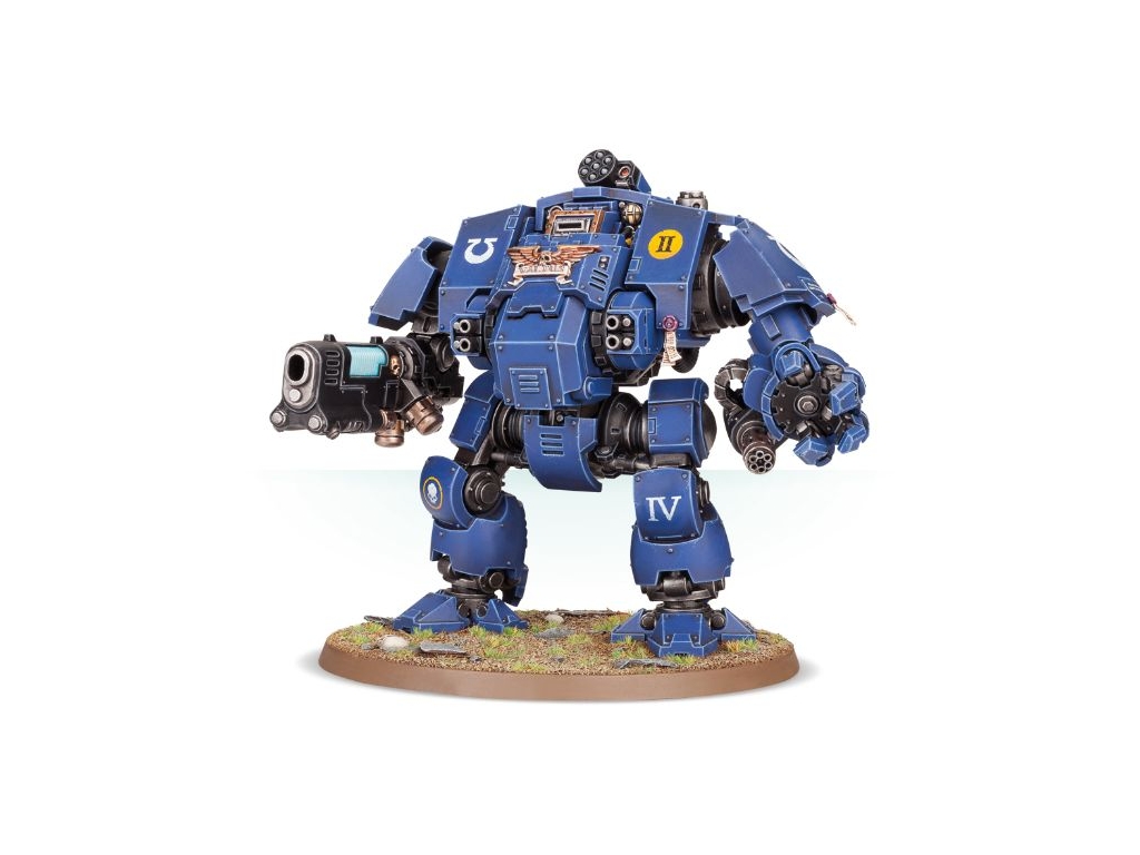 Redemptor Dreadnoughts are giant war machines that crush bone and splinter skulls as they bludgeon through enemy ranks. Taller, broader and more cunningly wrought than the Dreadnoughts of traditional design, these goliaths of battle are powered by hyper-dense reactors and sophisticated fibre bundles. They can accelerate from a thudding stomp to a loping, thunderous gait that shakes the ground, barrelling through hails of fire in glorious defiance. Such is the miraculous design of the Redemptor’s neural links that its inhabitant, despite being entombed in the sarcophagus within the Dreadnought’s chest, can exercise control with surprising dexterity and speed.
