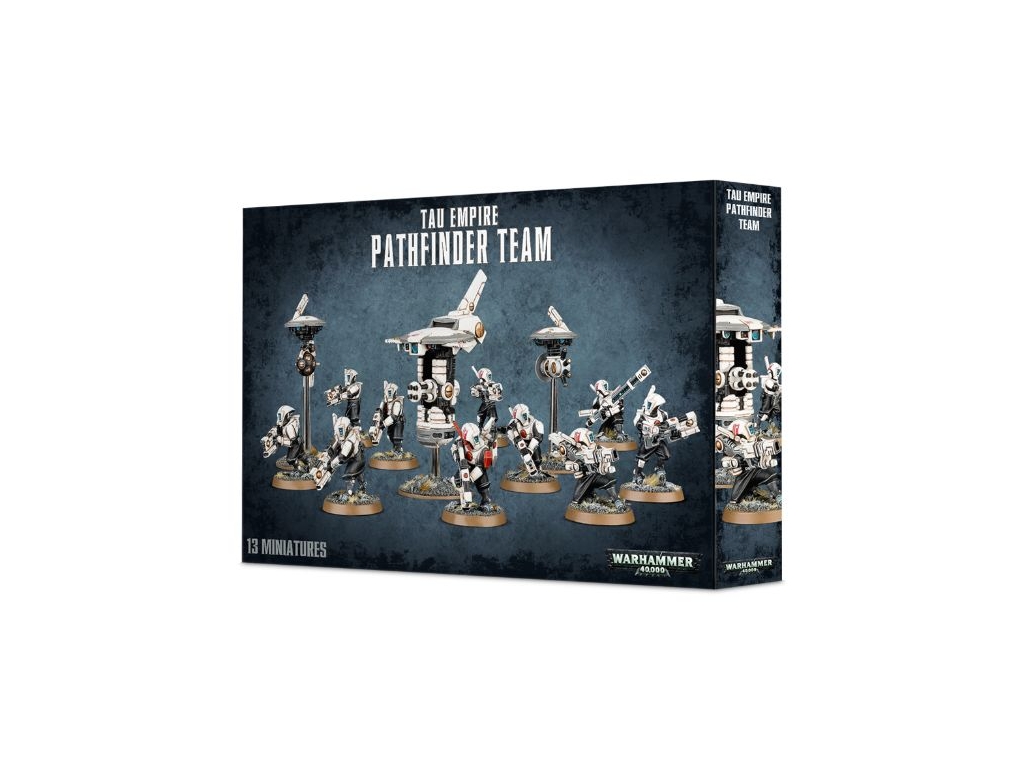 This multi-part plastic kit contains 137 components with which to make 10 Tau Pathfinders, a Pulse Accelerator Drone, a Grav-inhibitor Drone and a Recon Drone.