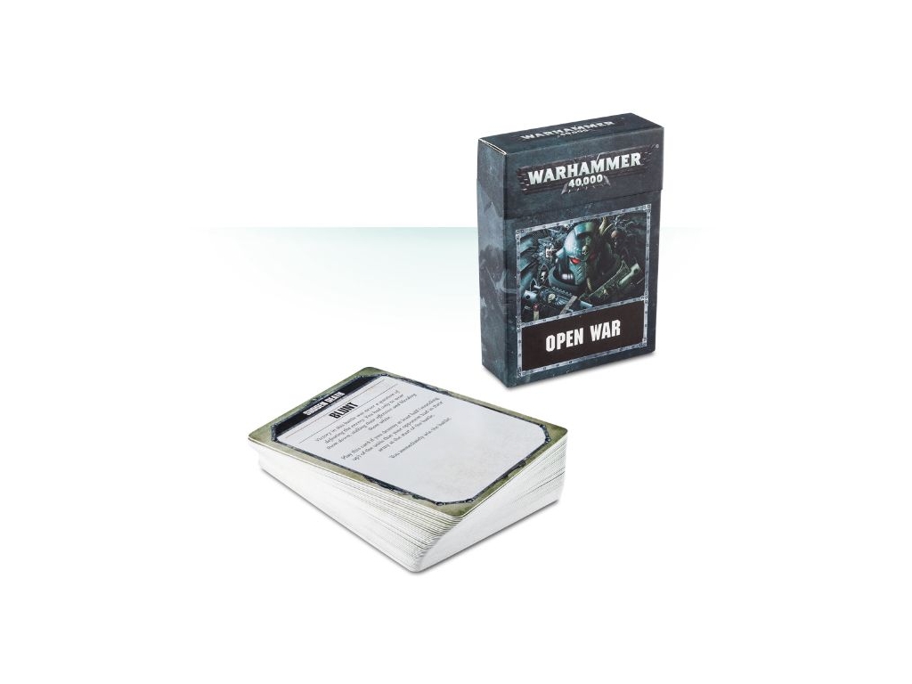 A simple and fun way to set up games of Warhammer 40,000, Open War cards take all the indecision and doubt away and let you get on with your gaming. A deck of 48 cards split into 5 types, they help you determine the deployment, objectives and special rules for Open Play games. Included: