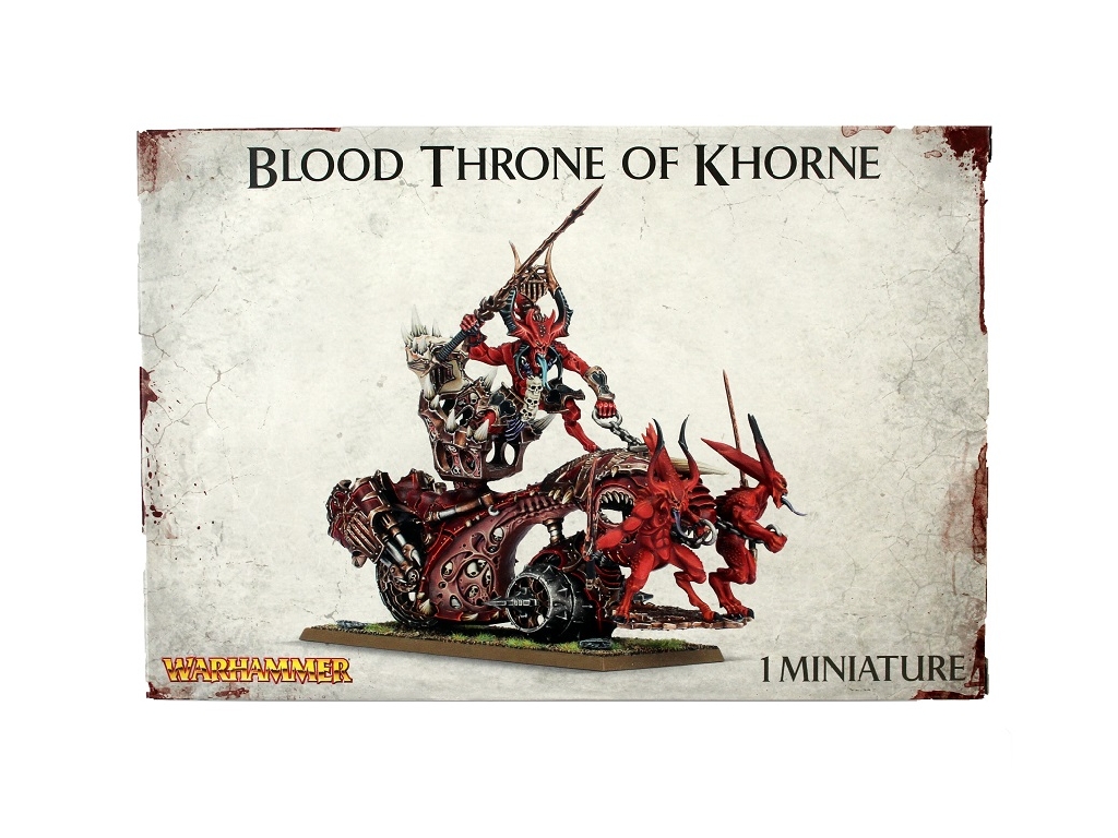 The Blood Throne is a baleful echo of the mighty dais upon which Khorne himself resides. It is a terrifying Daemon engine, armoured in brass and driven into battle by iron wheels that mangle all who stand in its path.