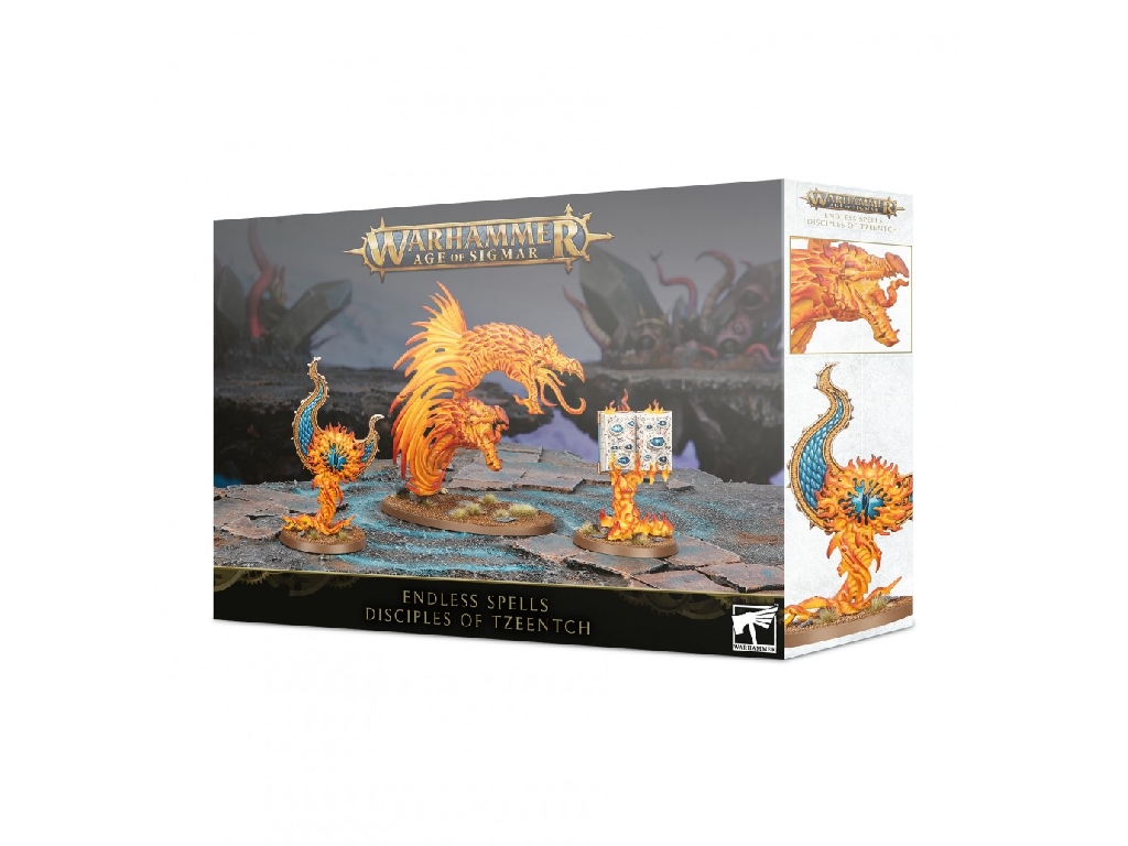 Tzeentch is the god of magic – so it stands to reason that his endless spells would be among the Mortal Realms’ most deadly and unpredictable summoned sorceries! With this set, you'll be able to wield the might of Tzeentch’s most powerful magics for yourself. This set contains 3 Tzeentch endless spells, usable by any Tzeentch Wizard. Inside, you'll find plastic models for: