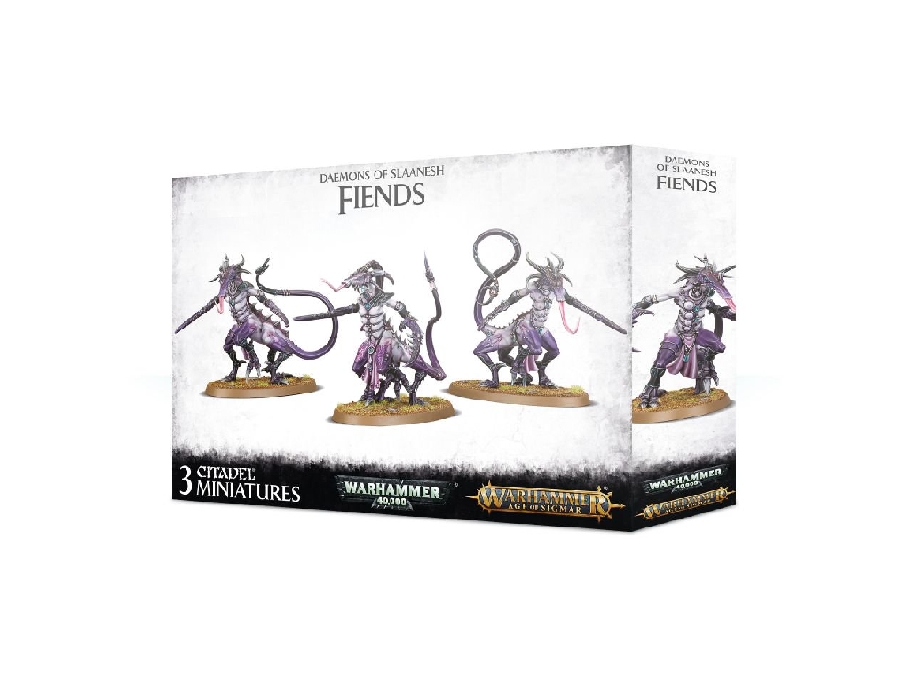 Horrific nightmares given bestial shape, Fiends of Slaanesh emit a harsh, trilling call as they race towards their prey. A cloud of dream-inducing musk hangs thick around the Fiends, reducing their foes to a stupor, and sapping them of their will to fight.