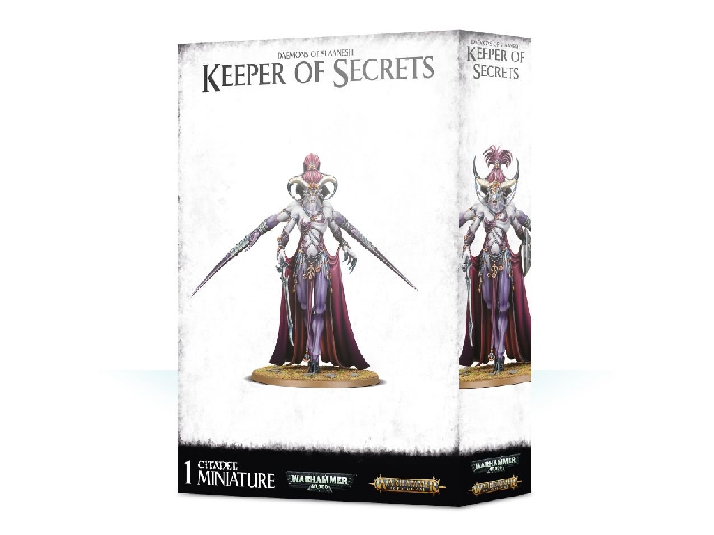 The Keeper of Secrets is the most powerful and dangerous of Slaanesh’s servants – graceful, fast, and utterly deadly. On the battlefield, these towering combatants can scythe through infantry formations and heavy armour alike with a flurry of attacks. Each is also a sorcerer capable of unleashing foul magics that can allure their foes or utterly destroy them and an accomplished commander that’ll empower nearby Slaanesh units. You’ll even be able to use it in both Warhammer Age of Sigmar and Warhammer 40,000.