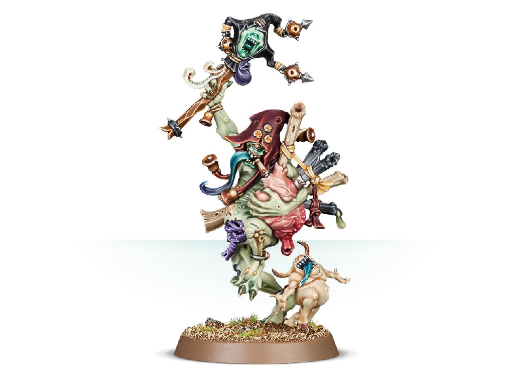 The Sloppity Bilepiper comes as 9 components, and is supplied with a Citadel 32mm Round base. This model can be added to Warhammer Age of Sigmar and Warhammer 40,000 armies.