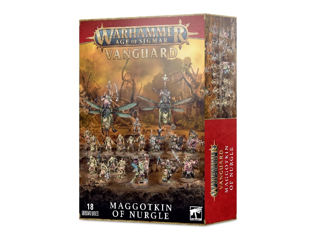 If you want to help bring Grandfather Nurgle's gifts to the Mortal Realms, then this Vanguard box presents a perfect place to start your Maggotkin army or to swell your existing festering horde. Including a Hero and two Battleline choices, this is a complete army in a box, meaning you can bring a blighted legion to the tabletop with just these miniatures.