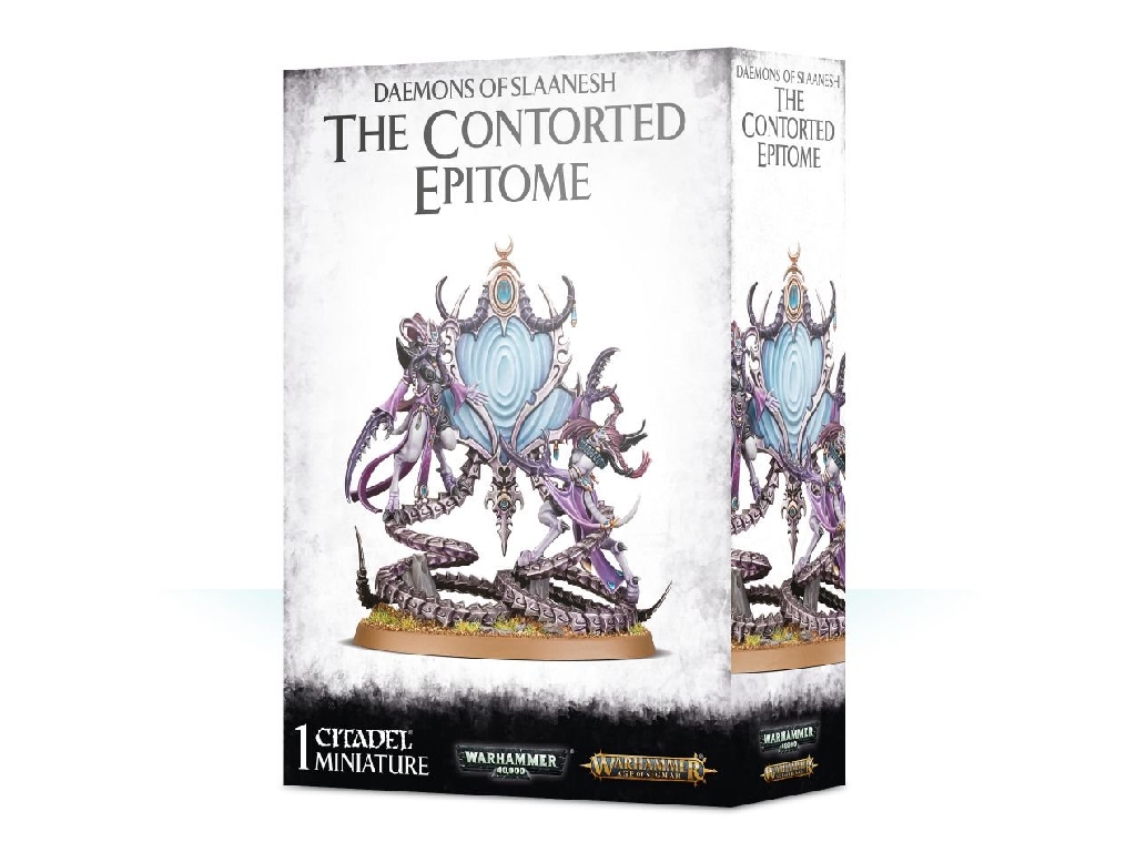The Contorted Epitome writhes across the battlefield on lashing metallic tentacles, twisting under the control of its Daemonette attendants to reflect its enemy’s darkest desires and deepest fears.
