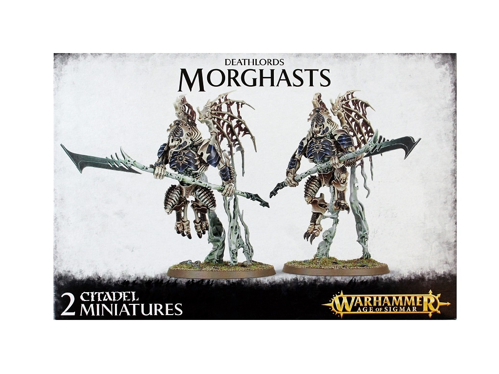 Sealed in tombs for centuries by their foes following the fall of Nagash and unable to be awoken by the paltry efforts of lesser wizards and Necromancers the Deathlords Morghasts are now resurrected with their dark master. These foul and terrifying creatures wade relentlessly into battle, and death follows in their wake with every slash of their cleavers. They were once pure beings of good sent to destroy Nagash. Nagash smote them and animated the corpses, corrupting them into beings of death and destruction.