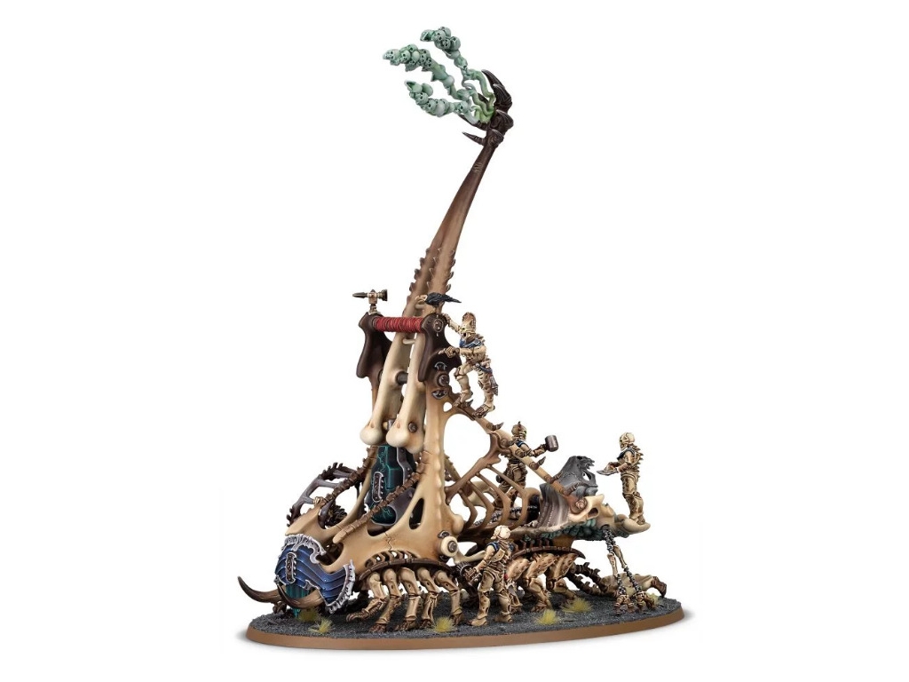 The arcane catapult known as the Mortek Crawler delivers death from afar with terrifying accuracy. It can fire hails of necrotic skulls that bite and gnaw, send soul-tearing spirits into the foe, or hurl weighty blocks graven with curses that can kill the mighty in an instant.
