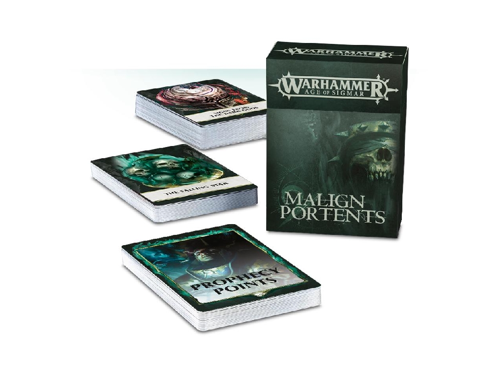 - 4 sets of 6 cards, containing rules for Guiding Malign Portents for each of the following Harbingers: the Darkoath Warqueen, the Lord-Ordinator, the Knight of Shrouds, and the Fungoid Cave-Shaman;