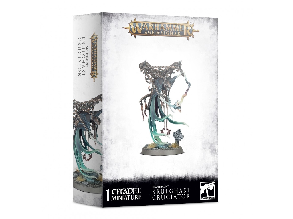 Bring terror to the battlefield with deadly torture implements and flensing knives, perfect for cutting through the armour of Nagash's enemies. Best (or worst) of all, the full might of their spectral powers is unleashed once your foes have felt the bite of their phantasmal abilities. The suffering of their foes causes a Krulghast Cruciator to become a beacon of death magic that anchors nearby Nighthaunt to the material world.