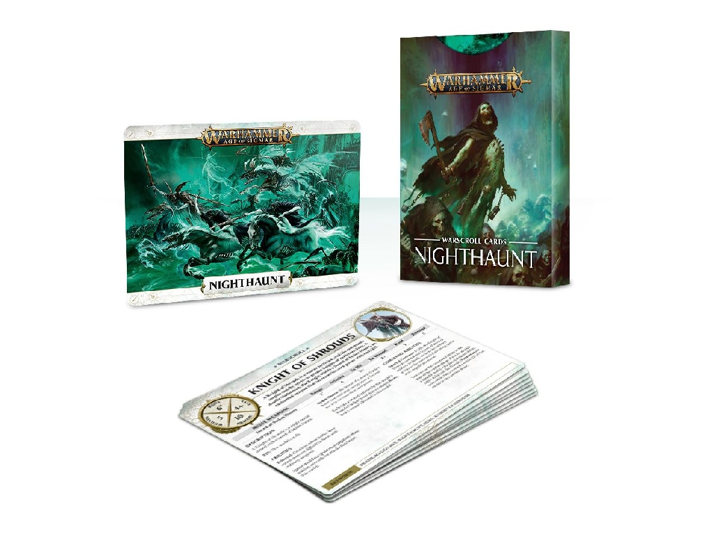 This pack of 24 large-format cards contains each of the unit Warscrolls from Battletome: Nighthaunt – including 3 Endless Spell Warscrolls – printed on individual cards for handy reference in your battles, along with 2 sheets of gaming tokens. These include Command Point tokens, 3 spell tokens from the Lore of the Underworlds and a set of Objective tokens.