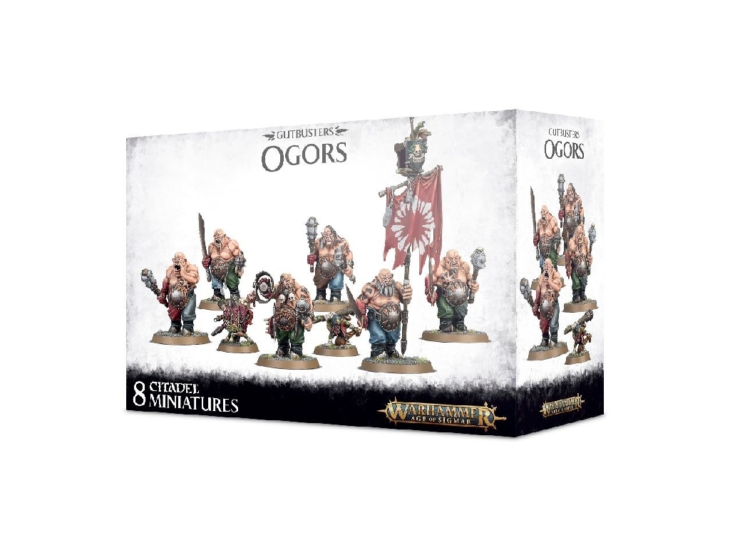 The Gutbusters exist as nomadic empires of warmongering ogors. Larger and stronger than most other races of the realms, they range across the lands robbing and raiding to keep their caravans filled with victuals. They worship Gorkamorka as the Great Beast that Consumes the World, their driving ambition to devour the Mortal Realms. To the Gutbusters, everything is either food for now or food for later, and their minds are forever fixated on where their next juicy meal is coming from. Many favour bludgeoning weapons, and sometimes even blunt their blades, so as not to lose any precious blood or ruin organs when they slay their enemies, saving the tenderised meat-bags for a bit of snacking later on.