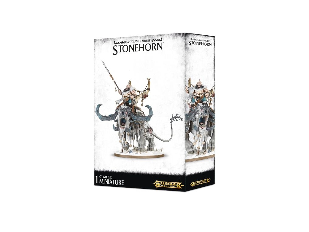 This multi-part plastic kit contains all the components necessary to assemble one Frostlord on Stonehorn, with a Citadel 120x92mm Oval base. The kit can optionally be used to assemble a Huskard or Beastriders on Stonehorn, or a Huskard, Frostlord or Beastriders on Thundertusk.