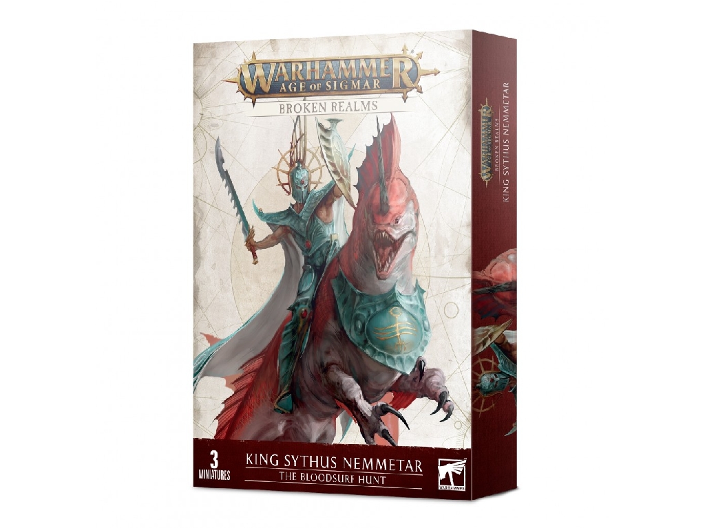 King Sythus Nemmetar of Príom is the trusted right hand and royal huntmaster of High King Volturnos. He is renowned as one of the finest beastriders in any enclave, and chooses only the most battle-hardened and skilled Akhelians to join his Bloodsurf Hunt. Any who draw the ire of the High King are pursued relentlessly by these cavaliers and their ferocious steeds, who can scent a single drop of their quarry’s blood from leagues away.