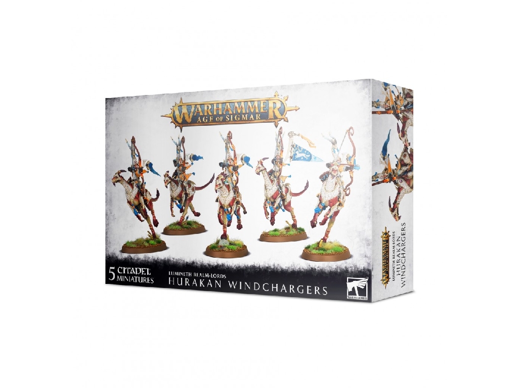 The kit is comprised of 89 plastic components, with which you can assemble 5 Hurakan Windchargers, with options to build one as a Seneschal unit leader and one as a Standard Bearer. They are supplied with 5x Citadel 60mm x 35mm Oval Bases.
