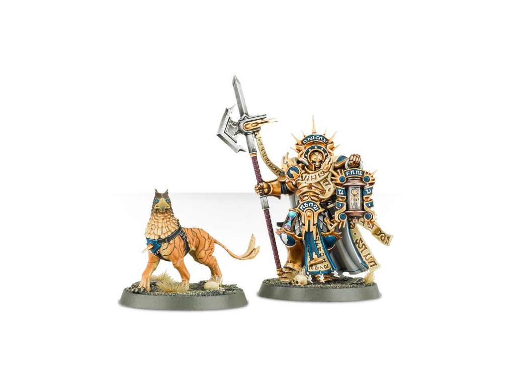 Watching over their Stormcast brothers with the guiding light of their warding lanterns spilling a glorious, warm glow over everything nearby, the Lord-Castellants are masters of defensive warfare. The purifying aura of their golden light shields and heals wounded Stormcast Eternals with celestial energy, while their loyal gryph-hound shreds the flesh of any evildoers unfortunate enough to get too close.