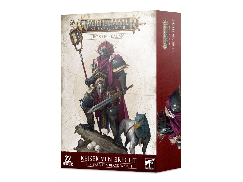 The grim Lord-Veritant Keiser Ven Brecht has assembled an elite band of Stormcast sharpshooters in order to track down servants of darkness operating in the shadows of Sigmar’s free cities. Known as the Black Watch, this retinue employs keen-scented Gryph-hounds to run heretics and traitors into the open before riddling them with a storm of lightning arrows. Guided by Ven Brecht’s centuries of bitter experience, there is no foe that can evade their relentless pursuit.