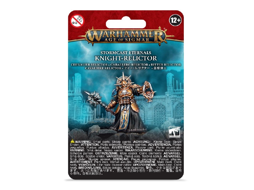This 10 part plastic kit makes one Knight-Relictor and comes supplied with one 40mm Citadel Round base. This miniature is supplied unpainted and require assembly – we recommend using Citadel Plastic Glue and Citadel paints.