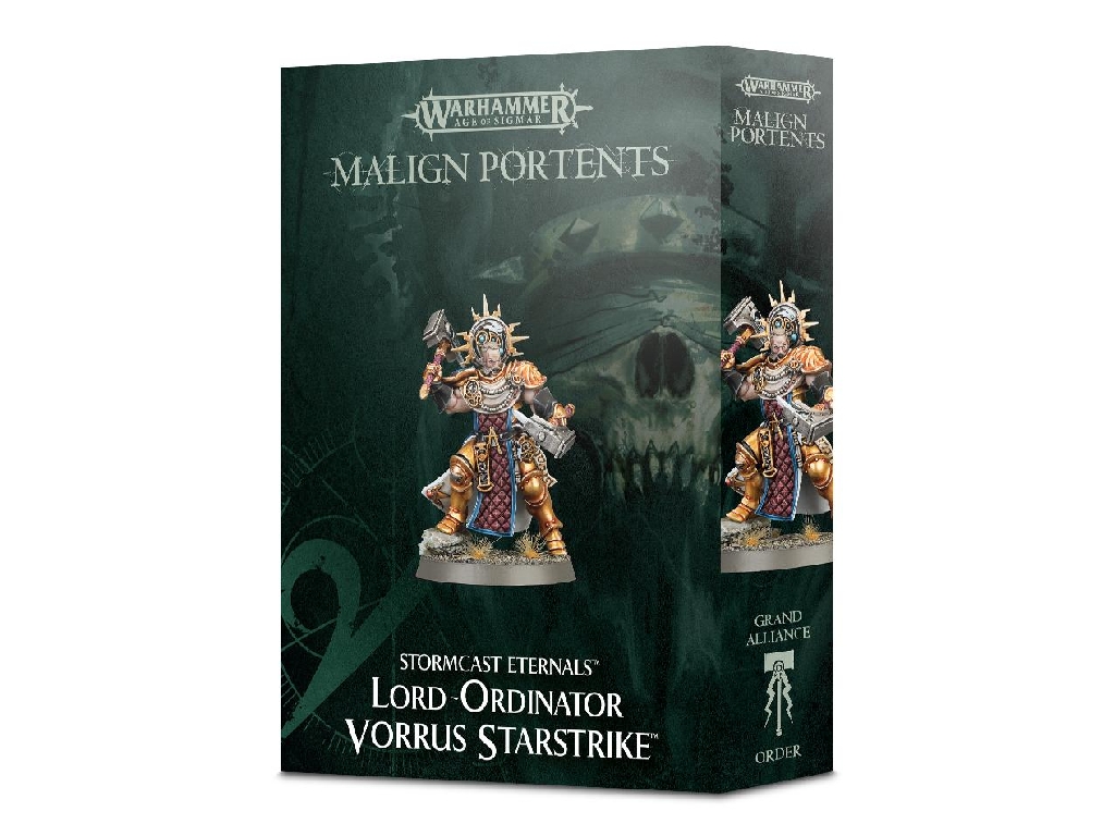 Masters of celestial engineering, the Lord-Ordinators are wise men who have shaped the Mortal Realms through the word of Sigmar and the readings of the heavens. When their sharp and serious minds cannot re-mould reality to their whims, they take up their hammers and march to war, hewing the future with each blow as a master mason shapes the stone of a temple to Sigmar’s glory. Striding to battle in sigmarite armour, Vorrus Starstrike wields hammers that strike with thunderclap force. It is his solemn duty to read the stars above, using the truths there to engineer fate on the battlefield.