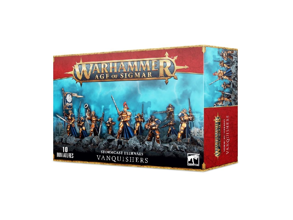 Vanquishers are expert, greatsword-wielding warriors, well practised in counter-charging enemy units pinned in place by Liberators and Vindictors. The celestial greatswords they wield with preternatural skill are embedded with a shard of celestium realmstone, which these warriors meditate upon until they become one with their blades.