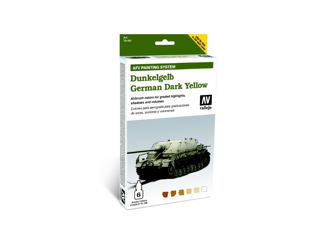 Airbrush colors for graded highlights, shadows and volumes. AFV Painting System. Consists in the application of a series of base colors in half and quarter tones, in a gradual change from one shade to another. These effects of light and shadow, contrast and volume, will give the scale model an authentic and realistic appearance.