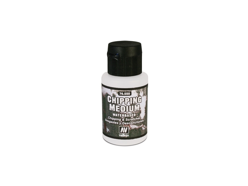 New waterbased Medium to create flaked paint, scratches, and rust chips. Chipping Medium can be applied with airbrush or brush to create chipping effects with waterbased acrylic colors.